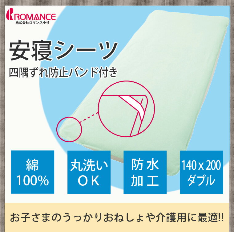 メーカー ロマンス小杉 品名 安寝シーツ 四隅ずれ防止バンド付きタイプ ダブル 140x200cm サイズ 140x200cm 素材 パイル糸/綿100% 地糸/ポリエステル100%(裏面ラミネート加工) 生産国 中国 製品につきましての詳細は大変お手数ではございますが下記までお問い合せ下さいませ。