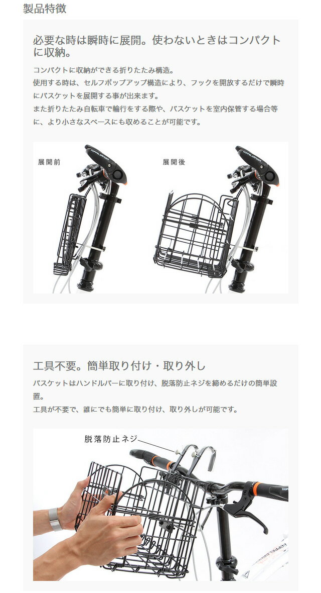 【4589946134964】【送料無料】【ドッペルギャンガー】 ワイドフォールディングバスケット ブラック 折りたたみ可能な前かご! 【すっきり収納!】
