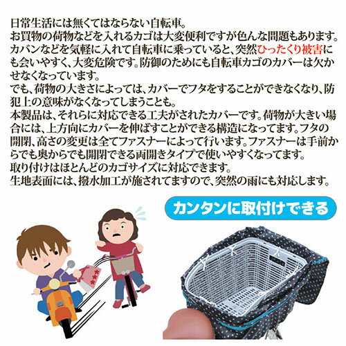 川住製作所 2段式 後カゴカバー(両開き)ブラックドット KW-510BD 808830 自転車 カバー 盗難 防止 安全 落下 買い物(代引不可)