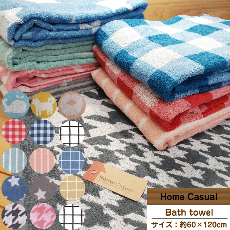 Home Casual柄物 バスタオル【約60×120】800匁 大人かわいい カジュアル柄ギンガム チェック チドリ エトワール シャイプライン かわいい スター 薄手