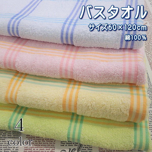 バスタオル 格子柄 綿100% サイズ60×120cm 4colors カラフルな色使いのバスタオルです